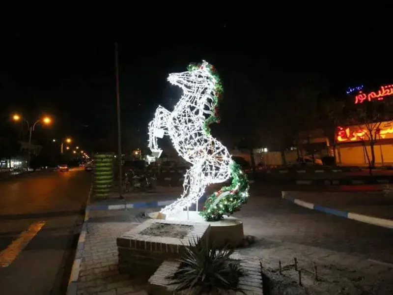 در این عکس المان نوری اسب ساخت شرکت بانور پارس نصب شده در پارک نوری شیراز را ملاحضه میکنید