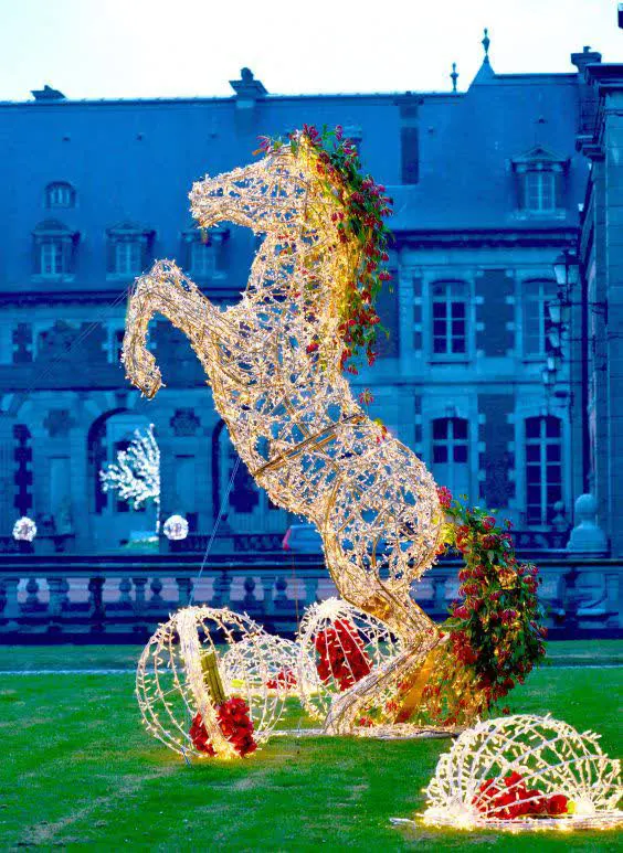 در این تصویر نصب شده المان نوری اسب ساخت شرکت بانور پارس در جشنواره نور تهران را مشاهده میکنید.